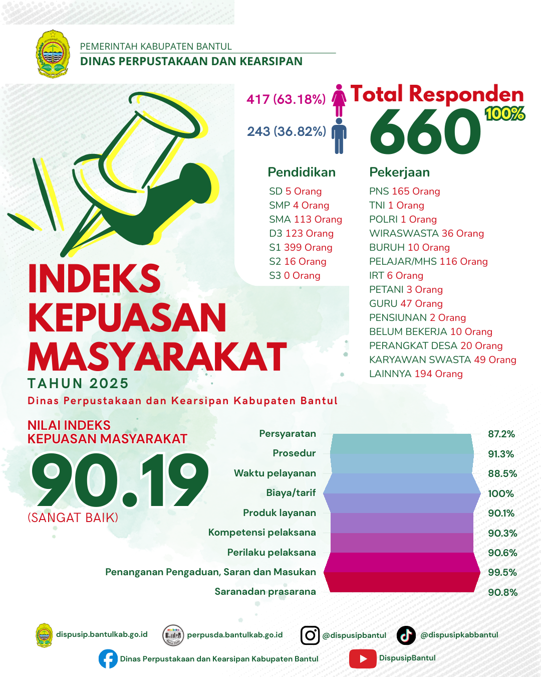 Selengkapnya Hasil IKM Dispusip Bantul Tahun 2025 Dinas Perpustakaan dan Kearsipan Kabupaten Bantul telah melaksanakan Survei Kepuasan Masyarakat ...