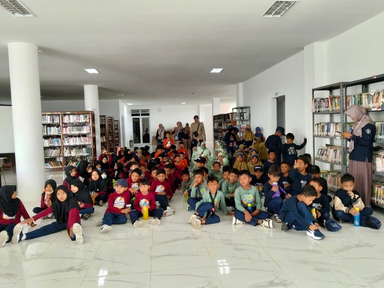 Di dalam, suasananya tenang dan sejuk. Rak-rak penuh dengan buku berwarna-warni. mereka disambut oleh petugas perpustakaan yang ramah. Beliau menjelaskan cara meminjam buku dan mengajak kami berkeliling melihat ruang baca, ruang komputer, dan pojok anak yang dipenuhi buku cerita bergambar.