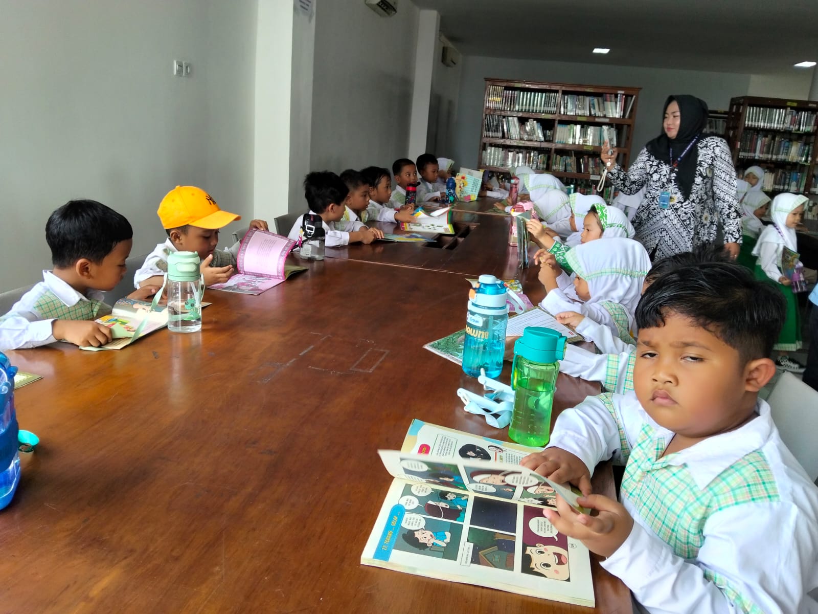 Suasana semakin meriah ketika anak-anak diberi kesempatan memilih buku dan membaca bersama guru. Kegiatan ini tidak hanya melatih kemampuan berbahasa, tetapi juga menumbuhkan rasa ingin tahu serta kebiasaan membaca sejak dini.