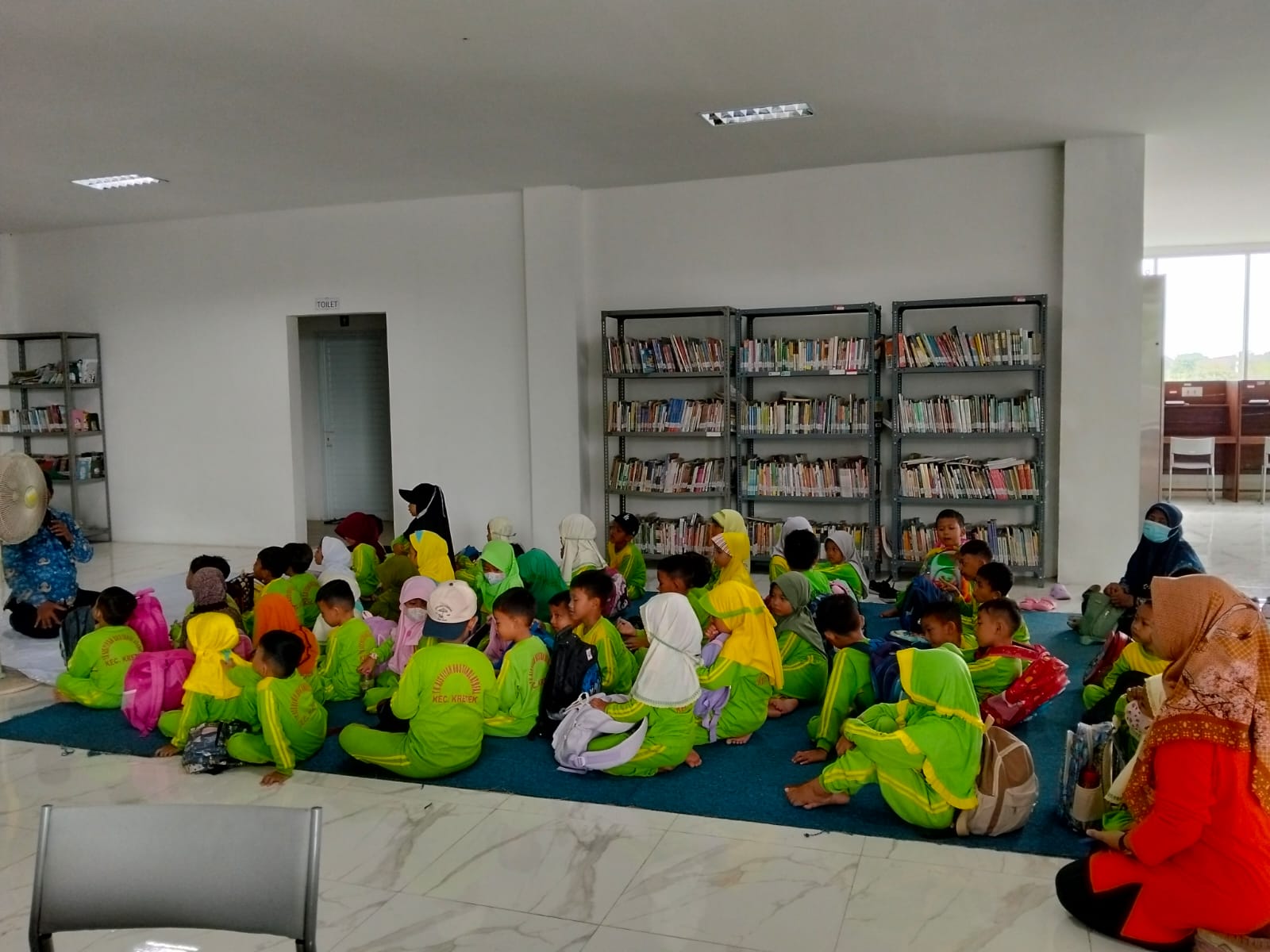 Mereka datang dengan bus dan di terima oleh petugas perpustakaan dengan ramah.Mereka di ajak ke lantai 3 untuk mendengarkan read aload cerita tentang " Ular & Tikus". Mereka tertawa riang dan antusias menjawab pertanyaan dari petugas. Mereka semakin semangat saat sesi menyanyi dan menari bersama. Setelah itu mereka di ajak menonton film edukatif,mereka menyimak dengan tenang dan tertib.Setelah itu mereka di beri kesempatan untuk bermain di Playground 🛝dan membaca buku 📚.
