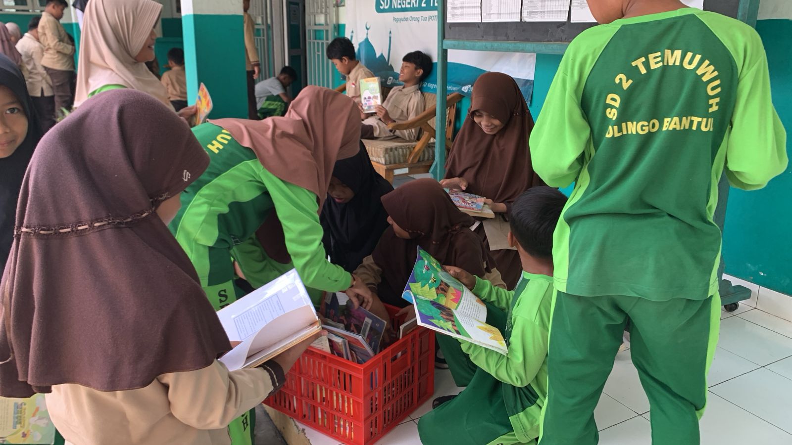Kehadiran layanan keliling disambut meriah oleh para siswa. Mereka tampak antusias memilih buku bacaan sesuai minat, mulai dari cerita anak, pengetahuan umum, hingga buku keterampilan. Aktivitas membaca di halaman sekolah pun berlangsung menyenangkan, penuh semangat, dan keakraban.