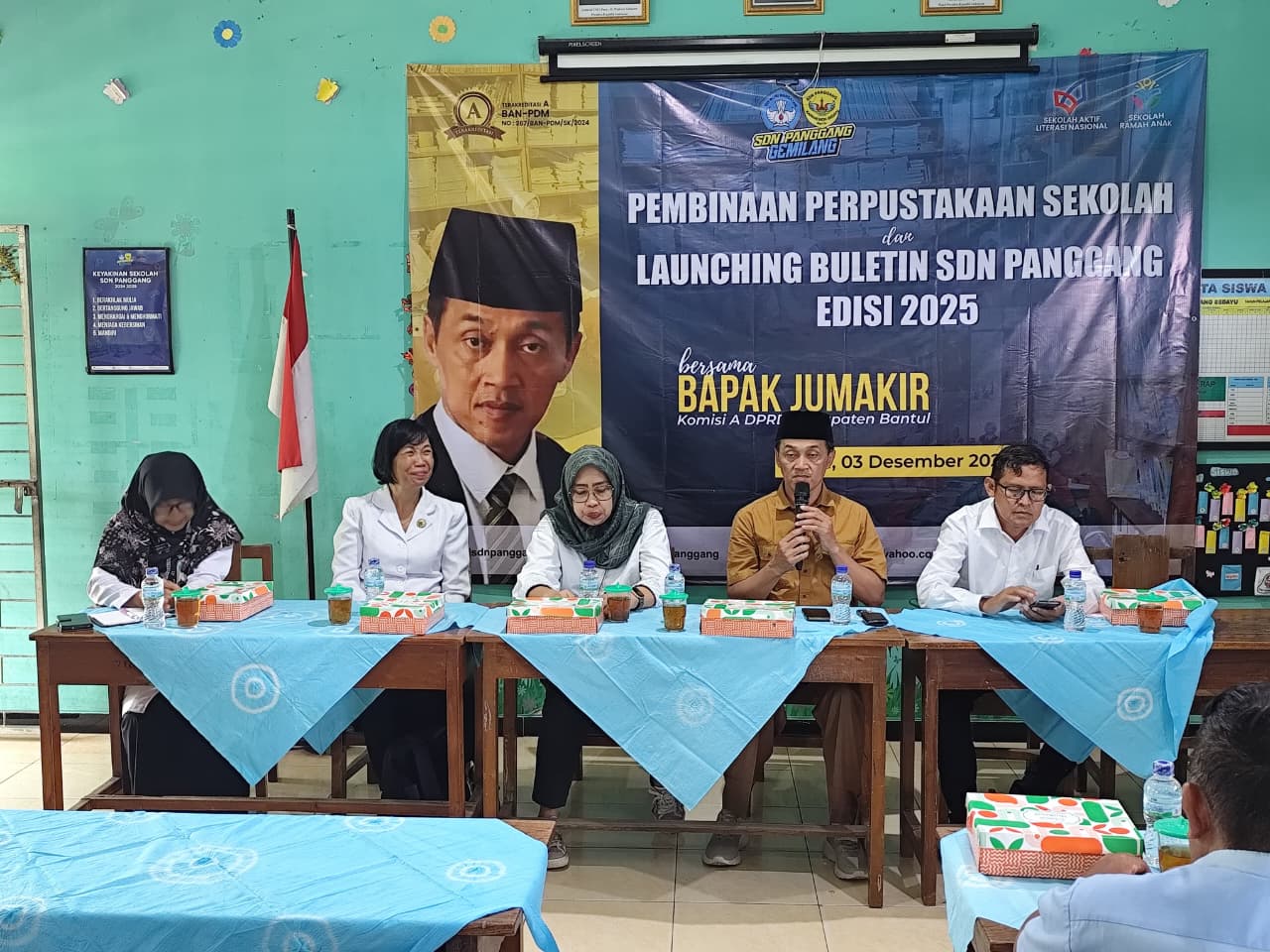 Bantul, (3/12/2025)– Dinas Perpustakaan dan Kearsipan (Dispusip) Kabupaten Bantul melaksanakan kegiatan Pembinaan Perpustakaan Sekolah sekaligus menghadiri Launching Buletin SDN Panggang Edisi 2025 yang berlangsung di SDN Panggang, Argomulyo, Kapanewon Sedayu, Bantul. Kegiatan ini dibuka secara langsung oleh Plt. Sekretaris Dinas Perpustakaan dan Kearsipan Kabupaten Bantul Ibu Zanita Sri Andanawati, SE.,MM., didampingi tim dari Dispusip Bantul. Pembinaan perpustakaan diberikan sebagai upaya peningkatan mutu pengelolaan perpustakaan sekolah agar semakin selaras dengan Standar Nasional Perpustakaan dan mendukung terwujudnya budaya literasi bagi peserta didik. Dengan menghadirkan narasumber Ibu Sri Winarni, A. Ma. Pust.