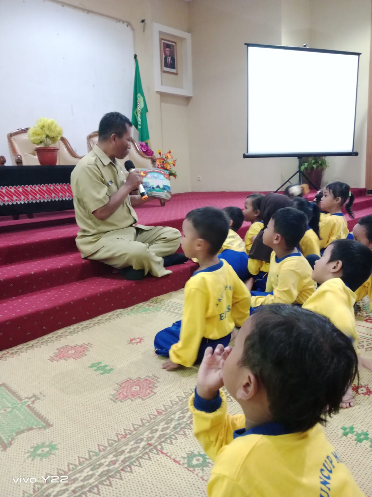 Kunjungan tersebut dilayani oleh pustakawan Dispusip Bantul Ngatijan A.Md yang memberikan pengarahan dan story telling menggunakan buku berjudul “Sang Juara Tari” serta memberikan pengenalan ruang koleksi anak dan buku-bukunya. Selain itu siswa-siswi juga diajak bermain dan bernyanyi serta pemutaran film sirkus lumba-lumba di ruang Audio Visual lantai tiga. Siswa-siswi KB Kuncup Mekar tampak antusias mengikuti kegiatan belajar out class di Dispusip Bantul.